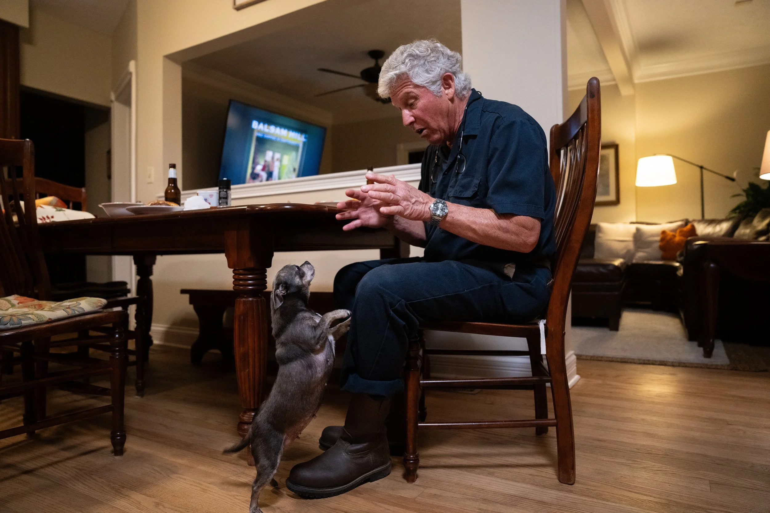 Mike is a beloved local veterinarian, who took over the practice from his father. Larry and Carol Bledsoe embrace as Mike puts down their 12 year old dog, Belle Starr. “Putting dogs to sleep right in front of their owners is the hardest part," Mike says.